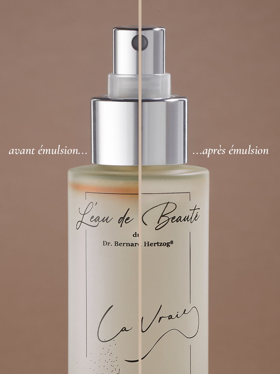 Beauty water from Dr. Bernard Hertzog® is a two-phase lotion whose supernatant colored part is made up of essential oils.